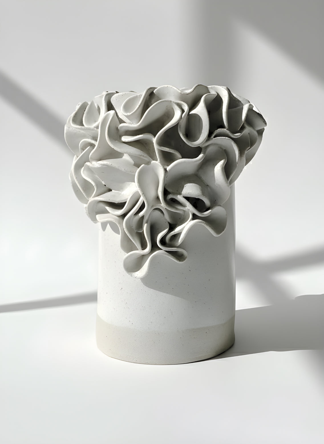 Oversized Ruffled Cylinder Vase - White Glaze